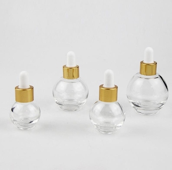 Botella de vidrio de perfume redonda vacía de 30ml Botella de spray de perfume de vidrio transparente con tapas blancas