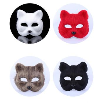 Costume Cosplay di Halloween mezza faccia animale in pelliccia sintetica gatto volpe maschere per le feste per le donne GirlsMasquerade Costume oggetti di scena